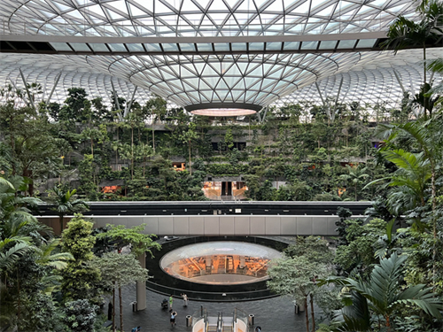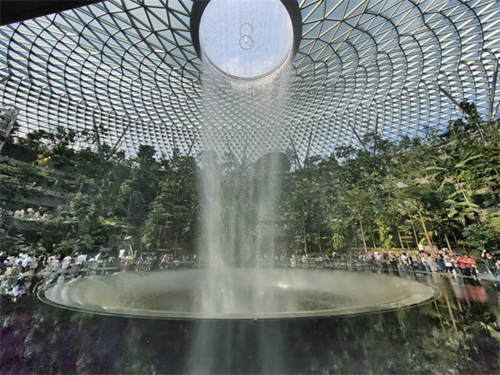 星耀樟宜是一座标志性的机场综合大楼,雄踞于1号航站楼前方,由玻璃与钢材构成的恢宏建筑外观是其最大特色,C位喷薄而下的瀑布让初来乍到的我们激情澎湃,这生机勃勃的一幕让同学们对接下来的学习充满信心。