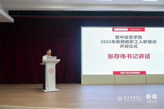胡继连常务副校长宣布“晋中信息学院2023年新聘教职工入职培训正式开班!”胡校长对全体新聘教职工再次表示了热烈的欢迎与殷切的期盼!