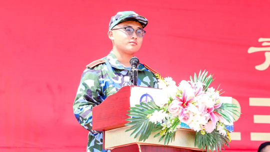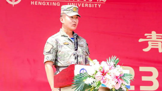 希望同学们珍惜机会,通过苦练军事技能,将个人的理想追求融入强国强军伟大事业中,以青春之我、奋斗之我圆满完成大学生军事技能的学习,在军事训练场上挥洒汗水,超越自我!