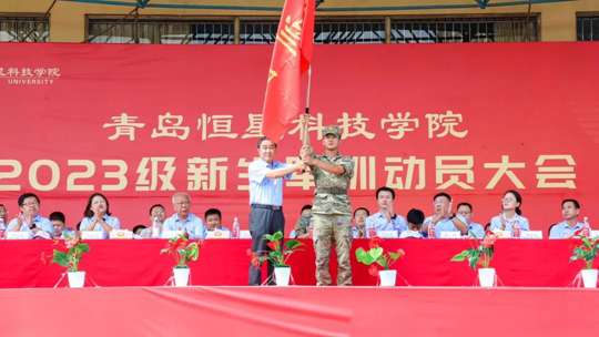 2023年8月29日上午,青岛恒星科技学院在恒星体育场隆重召开2023级学生军训动员大会。出席本次活动的领导有:海军潜艇学院学员三大队学员八队少校队长刘小伟,海军潜艇学院学员三大队学员八队区队长王振宇,青岛恒星科技学院党委书记刘龙海,恒星学者常德功,学校党委副书记、副校长王立庭,副校长韩伟、陈海艳、陈其谋,校长助理唐甜甜、史春猛,还有各处室处长、各学院名誉院长、院长、执行院长、副书记及相关辅导员老师。大会由学工部、武装部部长左军主持。