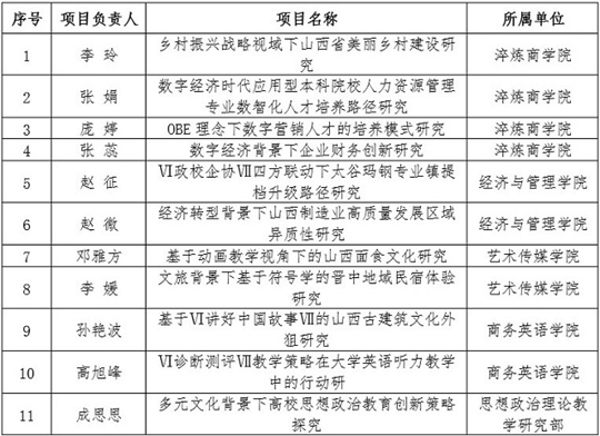 2023年度山西省高等学校哲学社会科学项目拟立项名单