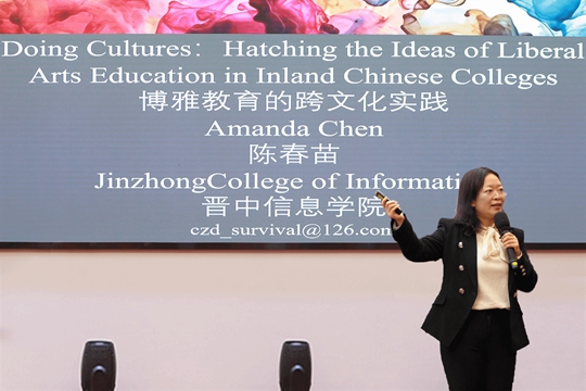 陈春苗副教授受邀在专题论坛“应用型高校通识教育的管理与实践”中作全英文发言。她以“内陆应用型高校实施博雅教育的跨文化实践”为题分享了学校的通识教育实践,受到与会专家的赞叹与好评。陈校长饱含深情地讲述了晋中信息学院独具特色的“四位一体双院制”的交叉融通育人模式从生根发芽、茁壮成长到向外辐射的生长历程,她着重系统梳理了学校始于小型精英式文理学院远景学院的博雅探索,到面向全校的体系完善、特色突出的通识教育体系构建的发展历程。陈校长的发言引发了在场国际国内专家的热烈讨论,专家们一致赞扬了晋中信息学院作为内陆应用型高校的典型代表在实施博雅教育方面的实践,由此论坛探讨了更多关于在应用型本科院校推行博雅教育的先进理念与做法。