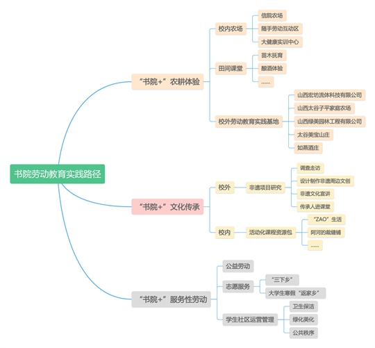 2022年9月,自印发《晋中信息学院新时代大学生劳动教育实施方案(试行)》以来,晋中信息学院紧扣立德树人的根本任务,结合“四位一体双院制+特色模块”的育人模式,成立劳动教育工作委员会,由校领导亲抓亲管劳动教育专项工作,打造了一整套融合思政、专业、创新创业、校园美化、农耕教育等多方面独具特色的劳动教育课程和评价体系;依托校内丰富的绿地空间、属地农耕资源及地区文化传统,全面铺开学校劳动教育,并以此为契机,拓展书院社区劳动项目,构建全员、全域、全面的劳育育人机制,搭建起3个系列、8条支脉富有特色的劳育平台,开辟了书院社区劳动教育发展的新道路。