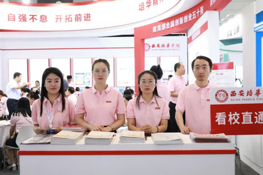 西安培华学院在二号展馆精彩亮相,通过展板、实物、新媒体等形式展示了学校历史、办学成果、校园文化以及思政育人实效、接受考生和家长的参观咨询。