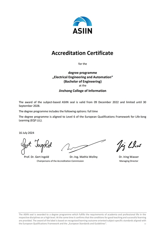 近日,接到德国高等工程教育认证委员会(ASIIN)通知,晋中信息学院“软件工程”和“电气工程及其自动化”专业通过德国工程教育专业认证(ASIIN),认证有效期为六年,截至到2028年9月30日,标志着认证专业建设水平再次得到了欧洲专业认证权威机构认可,为培养具有跨国职业资格的工程师奠定了坚实基础。至此,晋中信息学院“机械设计制造及其自动化”、“电气工程及其自动化”、“软件工程”、“网络工程”四个专业通过了德国工程教育专业认证(ASIIN)。