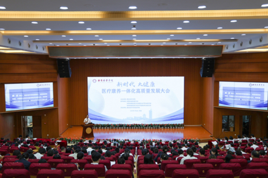 在新时代,大健康背景下,医疗康养一体化作为大健康产业的重要组成部分,正迎来前所未有的发展机遇。为推动医疗康养与教学、科研、产教研融合与创新发展,深化康复治疗与体医融合、医养结合领域的学术交流及成果转化,提升医疗康养一体化的研究水平,西安培华学院于7月6日上午,在图书馆报告厅召开以“新时代,大健康“为主题的”医疗康养一体化高质量发展大会。