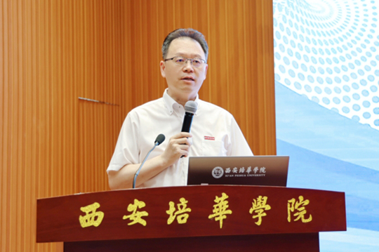 西安培华学院理事长姜波博士致辞,他首先对与会的专家、嘉宾表示热烈欢迎,同时向学校附属医院、教学医院、实习医院及参会单位多年来为医学教育教学的大力支持表示感谢。他强调指出:一是医疗康养一体化不仅仅是产业发展的趋势,更是满足人民日益增长的健康需求,我们需要坚持“以人为本”的发展理念,以科技为引领,以政策为支撑,以市场需求为导向,推动医疗康养产业向更高质量、更深层次的融合与发展;二是热切的邀请各位专家、兄弟院校、医疗机构和科研院所共同支持并参与培华在健康事业和健康产业方面的建设,为康养产业的发展贡献力量;三是学校正在积极推动与兄弟院校、医疗机构的深度合作,特别是深化与附属医院的紧密合作,旨在构建一个整合培华医校资源的全方位人才培养平台,推进医学领域的产业学院建设。