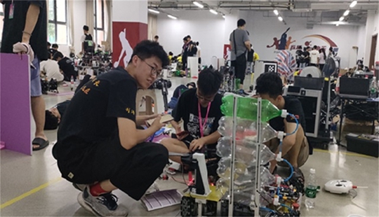 今年自大赛官网发布比赛主题开始,Creator机器人社在社团老师的指导下积极组织学生开始备赛,本次比赛的准备过程中得到了学校学院的大力支持。指导老师和学生利用寒假和本学期课余时间对机器人进行了设计、调整、优化,使其更为完善,完成度更高。在比赛中,同学们沉着冷静,齐心协力,稳定发挥。