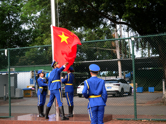 清晨8时整,伴随着雄壮激昂的国歌声,鲜艳的五星红旗在护旗手的护卫下缓缓升起,全体师生肃立,向国旗行注目礼,共同高唱国歌,用最真挚的情感表达对祖国的热爱与祝福。