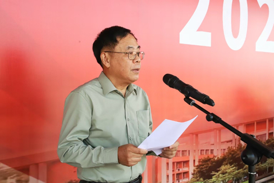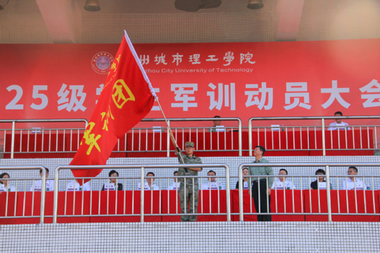 刘洊波作军训动员讲话。他指出,今年是中国人民抗日战争暨世界反法西斯战争胜利80周年。80年前,无数先辈用血肉之躯筑起民族长城。“今天,我们身处的和平校园,正是那段岁月的馈赠。军训是同学们铭记历史、传承伟大抗战精神的课堂。”他希望同学们要深刻领会军训的意义,不仅要学习军事技能,更要深刻体会军人的奉献精神、家国情怀,把军训当作磨练意志、提升自我的宝贵机会,在训练中思考和成长,在体验中感悟责任,真正做到“训有所获,念有所得”。要严格遵守军训纪律,时刻以军人的标准严格要求自己,服从教官指挥,不折不扣完成每一项训练任务。尊重老师,尊重同学,在团队协作中学会互助和包容,敢于挑战自我、超越自我,用昂扬的斗志展现广州城理学子的青春风采。要始终绷紧安全之弦,牢固树立安全第一的思想,训练前要热身,身体不适及时报告。