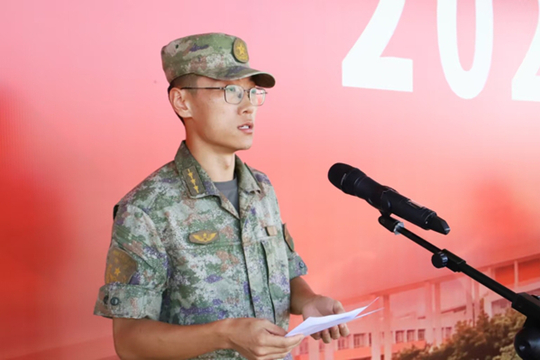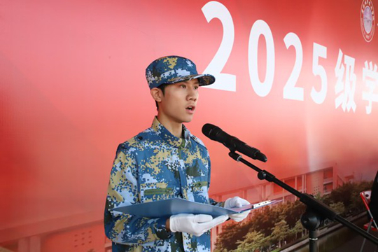 汽车与交通工程学院2025级学生招冠宏代表全体参训学生郑重承诺:以军人标准严格自律,听从指挥、令行禁止,学习教官过硬作风,把每一次训练都当作对意志的磨砺;严守训练纪律,认真完成每项任务,在训练中传承伟大抗战精神,展现新时代青年的责任与担当;勇于吃苦奋斗,不畏烈日与疲惫,在自我超越中践行“强国有我”的青春誓言。
