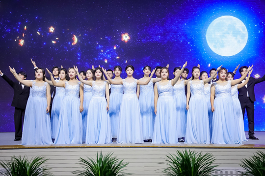 大会的第四篇章“向光而行”将现场气氛推向高潮,由大学生艺术团合唱团带来的小合唱《世界赠予我的》旋律悠扬,深情唱响了全体师生校友对母校三十周年最为真挚美好的祝愿。