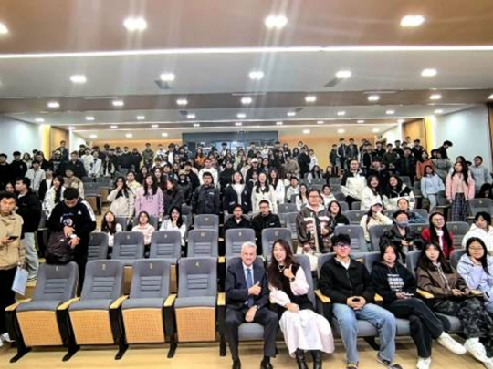 讲座中,Andreas Stoffers教授围绕FOM大学的课程体系与核心优势展开分享。他详细介绍了该校在应用型人才培养方面的特色课程设计,以及与行业接轨的教学模式,让在场师生对德国高等教育的实践导向有了直观认识。