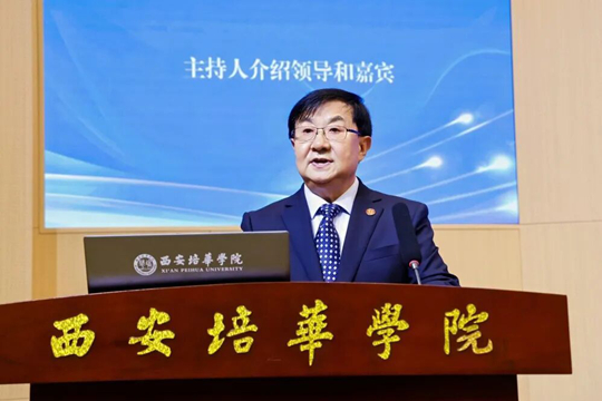 英国皇家学会工艺院院士、国际院士科技创新中心主任、西安培华学院名誉校长于建华院士在致辞中介绍了国际院士科技创新中心的基本情况,他指出国际院士科技创新中心作为汇聚国内外顶尖院士的高端平台,目前已有数百位两院及国际院士加盟,致力于打造“人才库、项目库、资本库”,加速超级项目落地。他希望西安培华学院能积极承担科技创新重任,加快成果转化,推动技术“引进来”与“走出去”,打造民营高校科技创新典范。