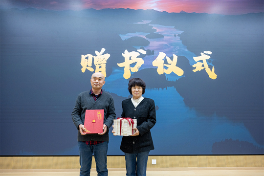 发布会现场还举行了赠书仪式,创意写作学院教师代表钟小骏、张东旭分别向学校图书馆和晋中市图书馆赠送《乌马河文丛·第五辑》及过往系列作品,希望这些文学的种子能在更广阔的土壤中生根发芽。