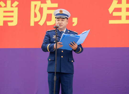 太谷区消防救援大队大队长张玉龙宣读《晋中市太谷区2025年消防宣传月活动方案》。