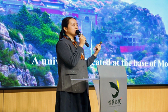 泰山科技学院为承接此次研讨班做了精心细致的准备。在欢迎仪式上,学校有关负责人向全体学员表达了诚挚的问候和热烈的欢迎,介绍了学校“信息产业商学院”办学定位和“培养数字经济时代高情商经营管理人才”的办学使命,以及“四位一体双院制”高质量人才培养体系,以及近年来在办学实践中取得的成果和有关留学生来校学习政策。学校快乐、时尚、活力、放松的大学理念,受到了来宾的高度赞扬。