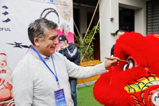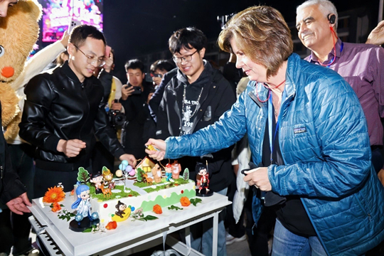在校园参访中,嘉宾们走进泰山科技学院新教育实验展馆,直观感受“生活即教育”的实践理念;通过泰山巨幕影谈电影放映、Disco House主题派对、岱庙参观促进跨国互动;更亲身参与南派醒狮、泰山碑刻拓印、刻纸等非遗体验,沉浸式感受中华文化的独特魅力。联合国教科文组织教师教育中心的Jordan Naidoo由衷赞叹:“这些艺术品,尤其是剪纸,图像非常漂亮。学生们对自身文化的热爱令人感动。”
