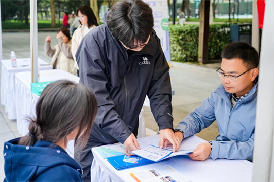 学生们在各个展位之间穿梭,与各企业的一线招聘负责人面对面沟通,了解行业需求、接触市场前沿信息,部分学生在现场与企业顺利达成初步求职意向。