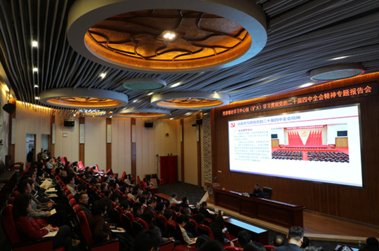与会人员认真聆听,提笔记录。大家一致认为杜书记的宣讲从全会提出的重大战略部署,到教育领域改革发展的新要求,紧密结合学校发展实际,主题鲜明、脉络清晰,内涵丰富、重点突出,既有理论高度,又有实践深度,对党的二十届四中全会精神有了全面、深刻的理解,进一步明确了未来工作的方向,今后将以更加饱满的热情、更加昂扬的斗志、更加务实的作风,攻坚克难,锐意进取,奋力谱写学校高质量发展新篇章。(记者 许晗星)
