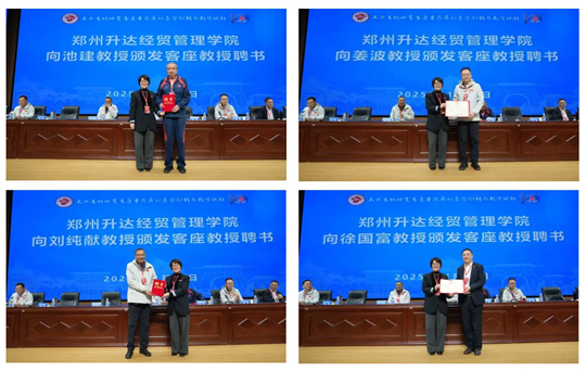 张欣向池建、姜波、刘纯献、徐国富颁发客座教授聘书