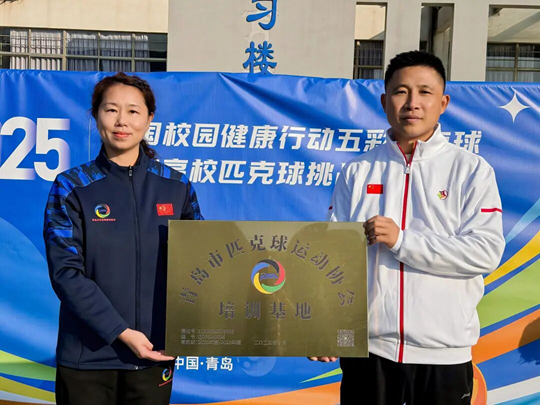在2025校园健康行动五彩匹克球活动的热烈氛围中,青岛市匹克球运动协会正式为青岛恒星科技学院授予“青岛市匹克球运动协会培训基地”牌匾。