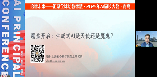 “生成式AI是天使还是魔鬼?”围绕这一备受关注的问题,上海社会科学院信息研究所所长刘炜在线上报告中详细阐述了AI发展现状、大模型优势与演进路径,指出AI对教育的影响尤为深刻,大模型时代学校更需要引导学生与大模型共生共存以获得人生意义。他结合政策分析AI在学前教育的应用价值,点明数据隐私、算法偏见等风险,强调AI不可替代教师,呼吁幼儿园以技术与师资双轮驱动,建AI友好的幼教环境,实现“智启童真未来”。
