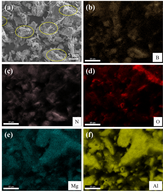 此外,郑欣团队发现镁碳耐火材料是冶金设备炉衬的关键材料,但高石墨含量在高温下易氧化的问题,致材料结构疏松、寿命缩短,又使氧化产物造成钢液增碳,影响低碳钢质量。随着洁净钢冶炼及节能降耗需求的提升,低碳镁碳耐火材料的研发迫在眉睫。然而,直接降低石墨含量会劣化材料性能,如何提升低碳产品的抗氧化性成为了难题。基于此,郑欣团队决心突破纳米氮化硼制备的技术限制,开发更加高效的纳米氮化硼粉体制备工艺解决难题。