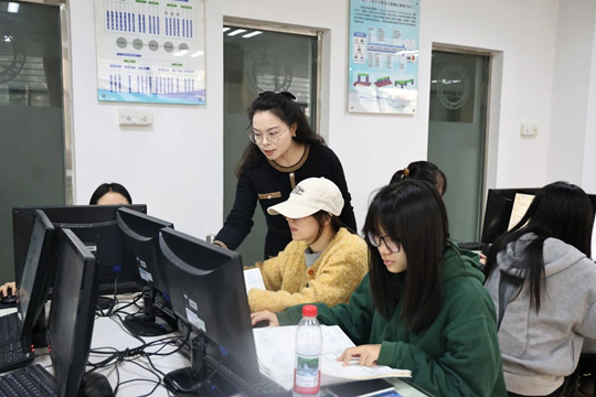 在3104机房内,是王淑芳副教授的《计算机辅助工程造价》课堂,没有传统的板书与冗长的理论,取而代之的是此起彼落的键盘声、屏幕上旋转的建筑模型和小组间热烈的讨论。这里是一个让图纸“活”起来,让造价“动”起来的创新空间。