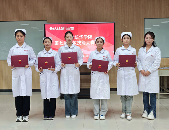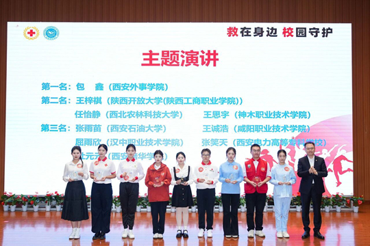 本次展示活动创新采用“专题培训+技能展示+主题演讲”三维模式,设置实操竞技、情景模拟等多维度考核环节,全方位考核参赛队伍的理论功底和协同能力。经过激烈角逐,分别评选出心肺复苏+AED单项奖一、二、三等奖;创伤救护单项奖一、二、三等奖;主题演讲单项奖一、二、三等奖;团体一、二、三等奖及优秀组织奖。其中,西安培华学院代表队获团体二等奖及优秀组织单位称号。医学院杨添乐同学摘得创伤救护组一等奖,张璐同学在成人心肺复苏(CPR+AED)项目获三等奖,杜元元同学获主题演讲三等奖。