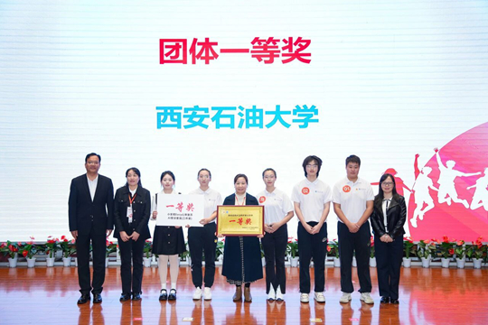 共青团陕西省委二级巡视员王军民为获得团体二等奖的队伍颁奖