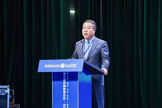 中国民办教育协会会长刘林在开幕致辞中回顾了论坛自创办以来在推动中韩高校交流、扭转疫情造成的交流低谷、促成百余项合作意向方面的显著成效。他指出,本届论坛更加注重拓展新的合作院校,并首次邀请韩国在华企业参与,推动校企协同,进一步增强论坛的实效性与影响力。他就深化未来合作提出两点建议:一是深化校际合作,鼓励高校围绕智能制造、数字经济等优势领域,将合作意向转化为年度行动计划,逐步建立“一对一”战略合作关系;二是拓展多方合作,搭建校企协同平台,使教育合作更紧密地对接两国经济社会发展需求。