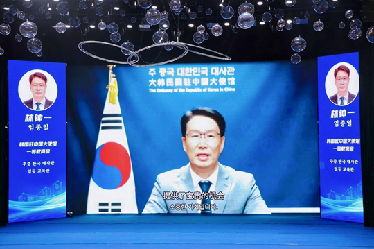 韩国驻中国大使馆一等教育官林钟一在视频致辞中表示,本次论坛是两国高等教育与企业共同成长、共建合作生态的重要平台。他呼吁中韩高校在人工智能与数字化转型浪潮中加强网络建设,共同规划教育与产业协同发展的可持续未来。