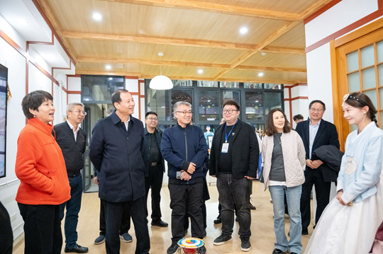 走进中韩学院,孙尧关切询问学生发展近况,并着重剖析了国际化办学中的育人关键。他强调,要注重培养学生的“历史思维”,帮助他们建立正确的心理认知和坚固的心理防线。对于学校在每个建筑设置韩语标识的做法,他连连称许,认为这为国际化办学创造了良好的语言和环境浸润。