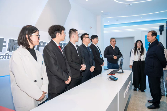 在双体软件精英产业学院,孙尧对“技术实战+职场关键能力”的双体系培养模式表示了充分肯定。在听完详细介绍后,他即兴用“大学生是一张可画精彩图画的白纸”这一生动比喻,精准地道出了学生们巨大的发展潜能与泰山科技学院在个性化培养上的努力,并鼓励学生们要紧盯技术前沿,努力提升实践能力。