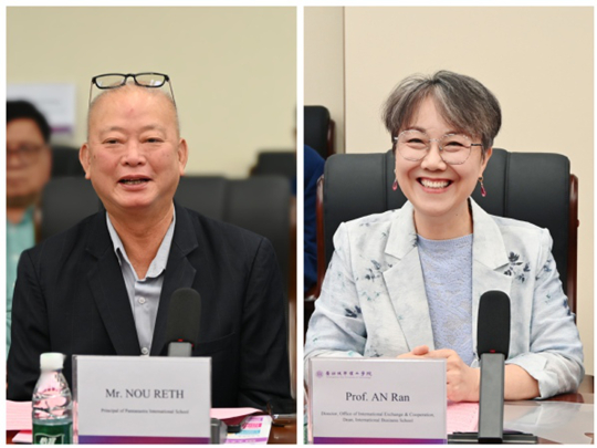 安然代表学校对代表团的到访表示热烈欢迎,对柬埔寨教育界给予学校的关注与信任致以诚挚谢意。她简要介绍了学校的办学定位、学科布局及国际教育发展成果,重点解读了国际学生招生政策、学费标准及奖学金体系。她表示,学校始终秉持开放办学理念,高度重视与“一带一路”沿线国家的教育合作。作为重要合作伙伴,学校已为柬埔寨学子搭建了多元化的求学平台,期待通过此次交流,吸引更多柬埔寨优秀青年来校深造。