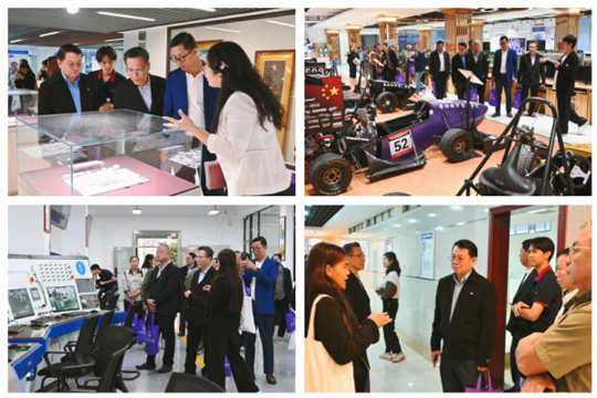 会谈结束后,在柬埔寨交换生的全程陪同下,代表团先后参观了学校相关实验室及学生公寓等教学生活场所。在师生创作展厅,同学们的科创作品与艺术成果展现了扎实的实践能力。绿智汽车与交通现代技术实验室的实训设备与教学成果彰显了产教融合特色;工程训练中心的先进设施与学生公寓的完善配套,让代表团对学校的办学条件给予充分肯定。来访嘉宾纷纷表示,通过实地考察和深入交流,对广州城市理工学院的人才培养质量充满信心,未来将积极推动柬埔寨学生与学校的交流合作。