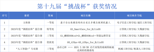 “青春为中国式现代化挺膺担当”,10月31日至11月3日,第十九届“挑战杯”全国大学生课外学术科技作品竞赛终审决赛在南京大学举行。本届比赛中,广州城市理工学院学生团队表现优异,共斩获5个国赛奖项,其中,主体赛一等奖1项,“揭榜挂帅”擂台赛特等奖1项(全国仅两所民办高校获特等奖)、三等奖1项、优胜奖1项,“人工智能+”专项赛三等奖1项,创下学校参加“挑战杯”赛事以来的历史最佳成绩。近三年,广州城市理工学院在“挑战杯”赛事中累计获得国赛奖项10项,成绩稳居全省同类院校第一。