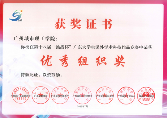 广州城市理工学院获得2025年“挑战杯”省赛优秀组织单位(陈政甫 提供)