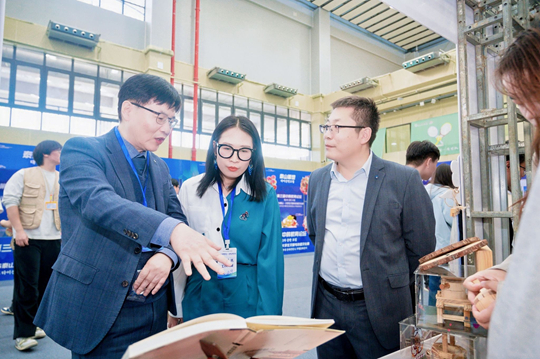 “2025泰山·大学生文旅与非遗文化展”成为互动热点。嘉宾们体验泰山煎饼制作、组装榫卯模型,与非遗传承人零距离交流,亲身感受泰山文化的魅力。信韩大学国际学院护理保健学主任教授崔明植表示:“今天能来到中国,参与这场意义深远的交流活动,我特别有感触,感觉中韩紧密相连宛如一体。”