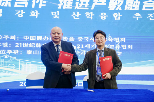 2025年11月1日,第三届中韩教育论坛在山东省泰安市泰山科技学院成功举办。本届论坛由中国民办教育协会主办,21世纪韩中交流协会协办,泰山科技学院承办,以“加强国际合作,推进产教融合”为主题, 在中韩建交33周年及两国首脑友好会见的重要背景下举行,为深化中韩教育务实合作,服务教育强国战略实施,提供了高水平的、有效的交流平台。