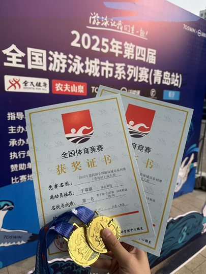 赛后,于瑞涵分享道:“这次参赛,也是想为队员们树立一个标杆。未来我会将大赛中积累的经验融入日常教学,带领更多学生在游泳中锤炼意志、突破自我,为学校游泳事业持续贡献力量。”
