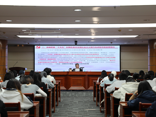 整场宣讲内容扎实、逻辑严谨,既具备理论深度,又贴合学生实际。同学们会后纷纷表示,对党的二十届四中全会精神有了更加清晰的认识。2024级大数据管理与应用专业何晓靖表示,“聆听完校长的宣讲后,我深受启发,对全会精神、‘十五五’时期的关键地位以及经济社会发展的指导方针、主要目标和重大举措有了更清晰的认识。今后,我将谨记校长的勉励,坚定信念,挺膺担当,既埋头读书,也抬头看路,与国家发展同频共振,为推进中国式现代化贡献青春力量。”2024级英语专业王金超表示,“校长的宣讲,让我对党的二十届四中全会精神有了更深刻的理解,也清晰地认识到青年学生在时代发展中的角色定位。未来,我将立足学业、勤学善思,用实际行动响应学校号召,为学校高质量发展添砖加瓦。”(记者 赵程远)