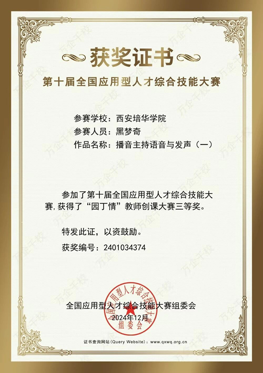 此次参与央视纪录片创作,既是黑梦奇老师个人专业实力的体现,也是西安培华学院在语言艺术教育领域深厚积淀的一次集中展示。学校始终坚持支持教师发挥专业优势,将一线实践经验融入教学,培养能够适应行业需求的高素质应用型人才。