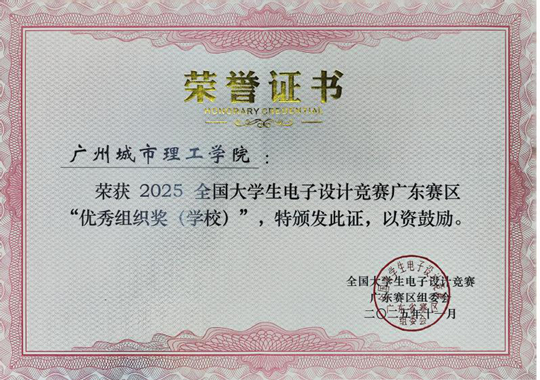 | 广州城市理工学院荣获全国大学生电子设计竞赛广东赛区优秀组织奖 |