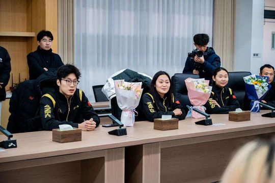 校长助理武浩然、竞技体育中心主任刘哲、竞技体育中心体育训练部主任魏巍及有关师生代表参加欢迎会。