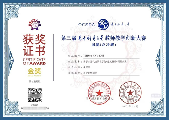 | 从课堂到国赛金奖!西安培华学院魏舒乐老师《建筑解析》课程创新实践彰显教学硬实力! |