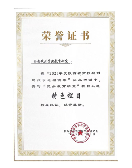 | 《西安欧亚学院教育研究》入选陕西省高校期刊建设示范案例库 |