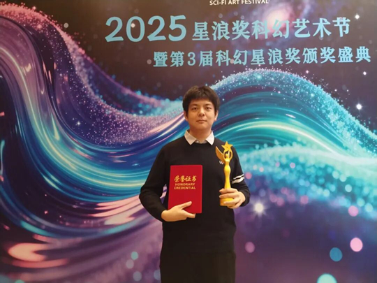 泰山科技学院教师王云轩凭借其长篇科幻小说《天幕巨噬》,获得本届星浪奖文学单元“优秀中长篇奖”。该作品此前曾获第十三届“科幻光年奖”中长篇冠军。评委会认为,《天幕巨噬》在叙事结构、科学逻辑与人文思考方面展现出较高水准,体现了作者对科幻题材的深入探索。