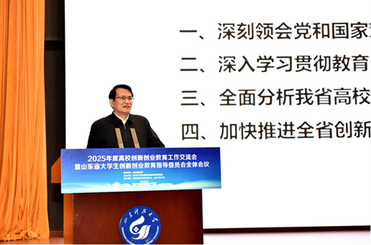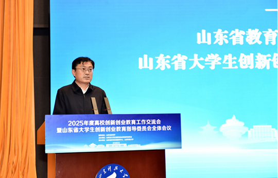 12月19日,2025年度高校创新创业教育工作交流会暨山东省大学生创新创业教育指导委员会全体会议在山东科技大学召开。省委教育工委委员、省教育厅党组成员、副厅长王浩,山东科技大学党委书记王君松,党委常委、副校长诸葛福民出席会议。省教育厅高等教育处处长曾宪文总结部署全省高校创新创业教育工作。会议由省教育发展服务中心主任魏光祥主持。青岛恒星科技学院党委委员、副校长陈海艳受邀代表学校作《以“四个融合”促进创新创业教育改革走深走实》专题经验汇报。